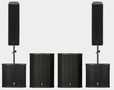 Leistungsstarkes PA-Set mit vier horngeladenen Subwoofern je 600W/138dB zwei mittel/hochton Lautsprechern je 1000W/135dB. Dieses Set liefert extrem hohen Schalldruck im Bassbereich mit einer ausgewogenen 3-Wege Klangdynamik wobei die Säulenlautsprecher von RCF für glasklare Übertragung mit einer hohen Reichweite sorgen. Das Set wird inklusive der notwendigen Verstärkertechnik und Zuspieler geliefert.
